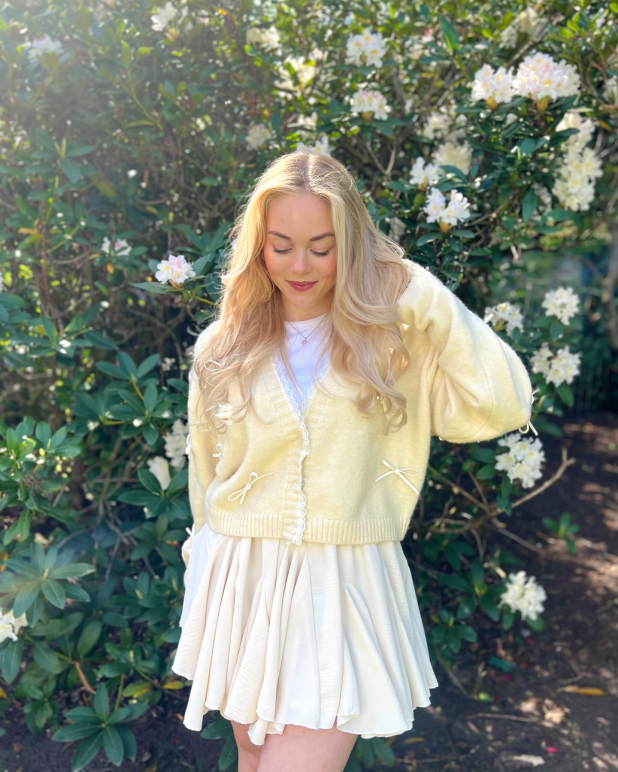 This is a classic “Creamy Girl” look—soft, gentle, and super sweet. It features a butter-yellow knit cardigan with a matching pleated mini skirt. The light and clean colors are perfect for a spring vibe.